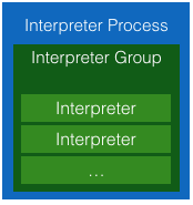 在Isolated模式下: 独占式,为每个note创建一个独立的intepreter进程,该进程中创建一个InterpreterGroup实例,为该note的服务的Interpreter实例从属于该InterpreterGroup。