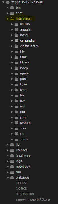 interpreter的每个文件夹中存放的是编译好的jar包,以及该interpreter的相关依赖。
